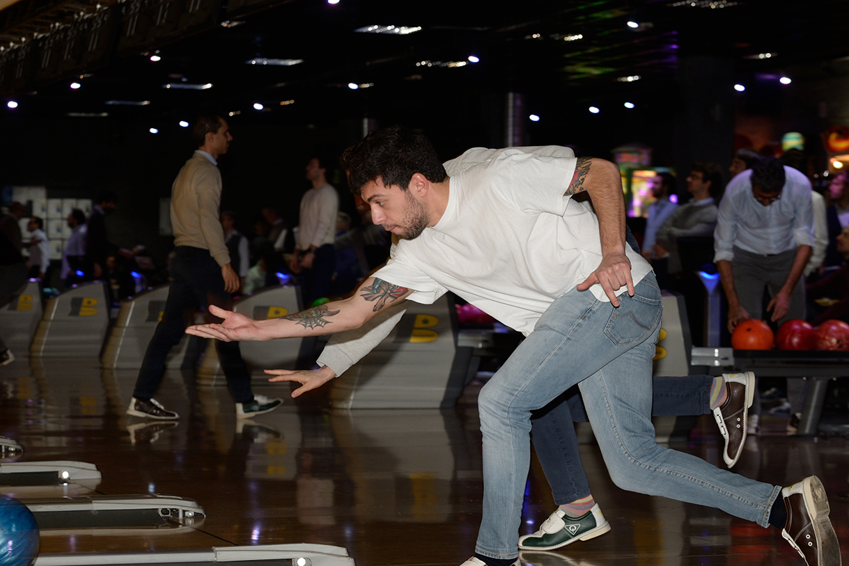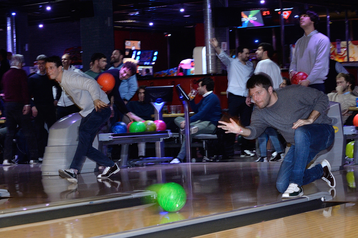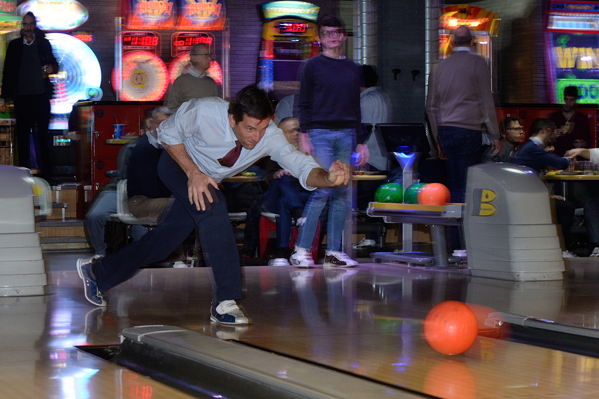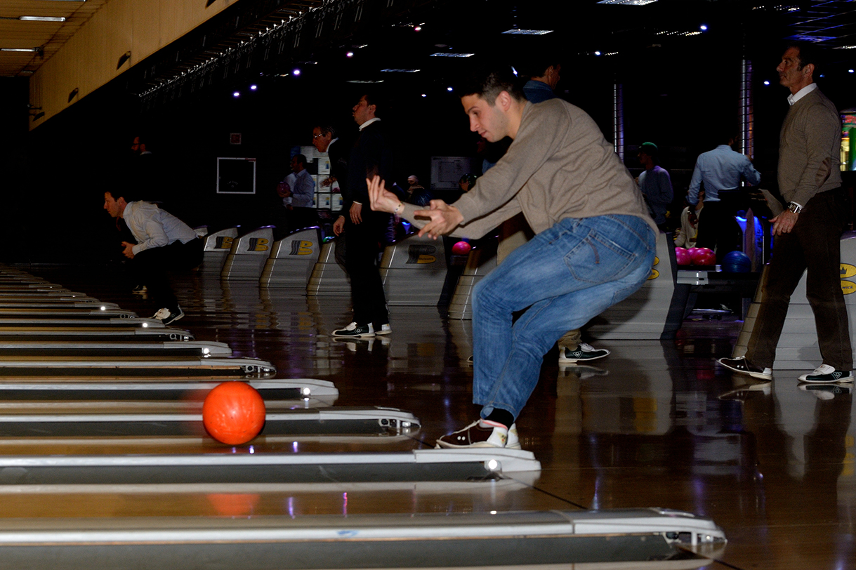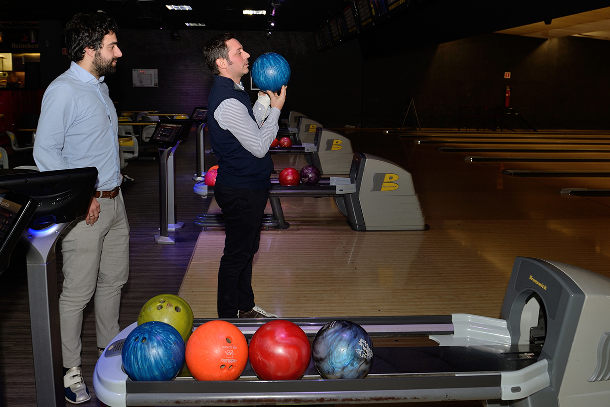 Tutte le piste del Brunswick, che sono 23, impegnate per un paio d’ore, birilli da buttare giù, “canali” da evitare per i meno esperti, “strike” e “spare” invece per i più bravi e tutto sempre con grande divertimento e autentico spirito sociale con un panino e una birra tra un lancio e l’altro.