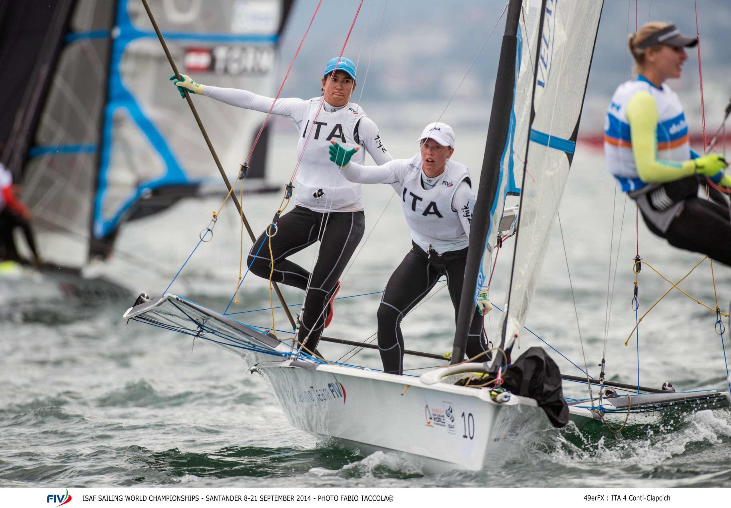 Il vento finalmente fa la sua comparsa ai Campionati Mondiali ISAF e lo spettacolo delle classi olimpiche trasforma la baia di Santander in una sorta di “Vela Park”: protagonisti del giorno gli equipaggi CONTI-CLAPCICH (49ER FX), BRESSANI-MICOL (NACRA 17), REBAUDI-RAMIAN e PILATI-RUBAGOTTI (470 M).