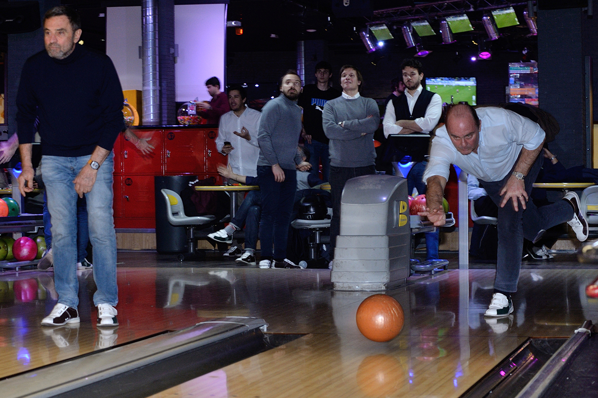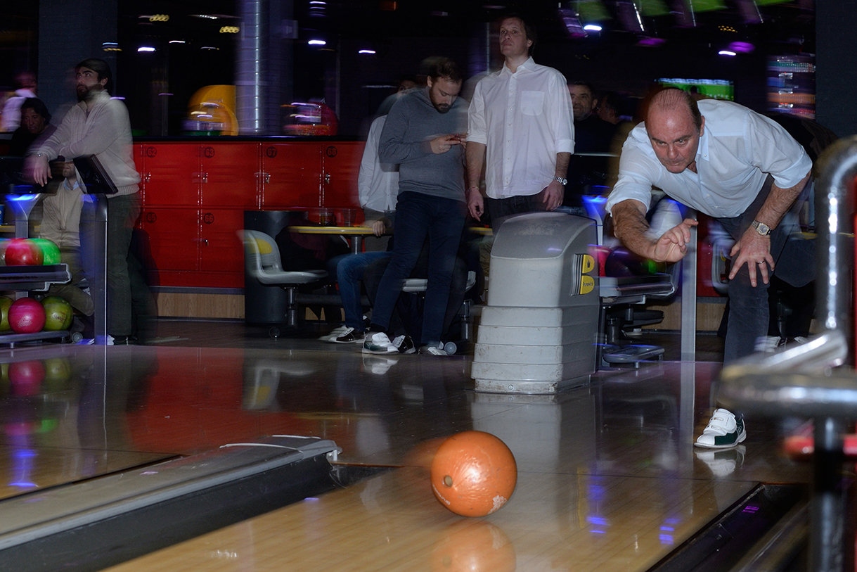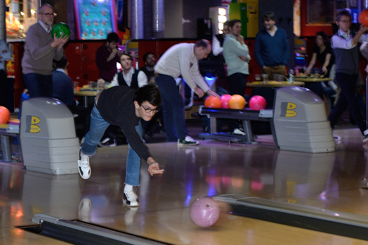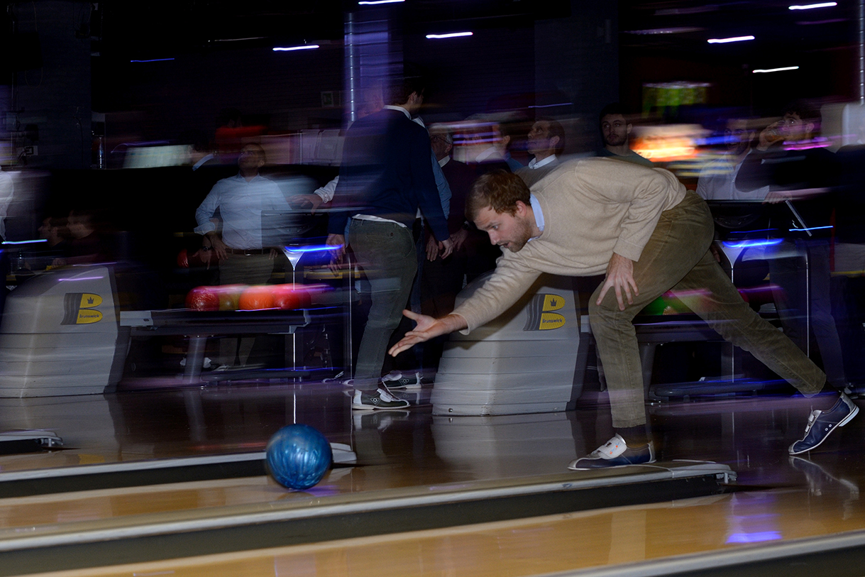 Tutte le piste del Brunswick, che sono 23, impegnate per un paio d’ore, birilli da buttare giù, “canali” da evitare per i meno esperti, “strike” e “spare” invece per i più bravi e tutto sempre con grande divertimento e autentico spirito sociale con un panino e una birra tra un lancio e l’altro.