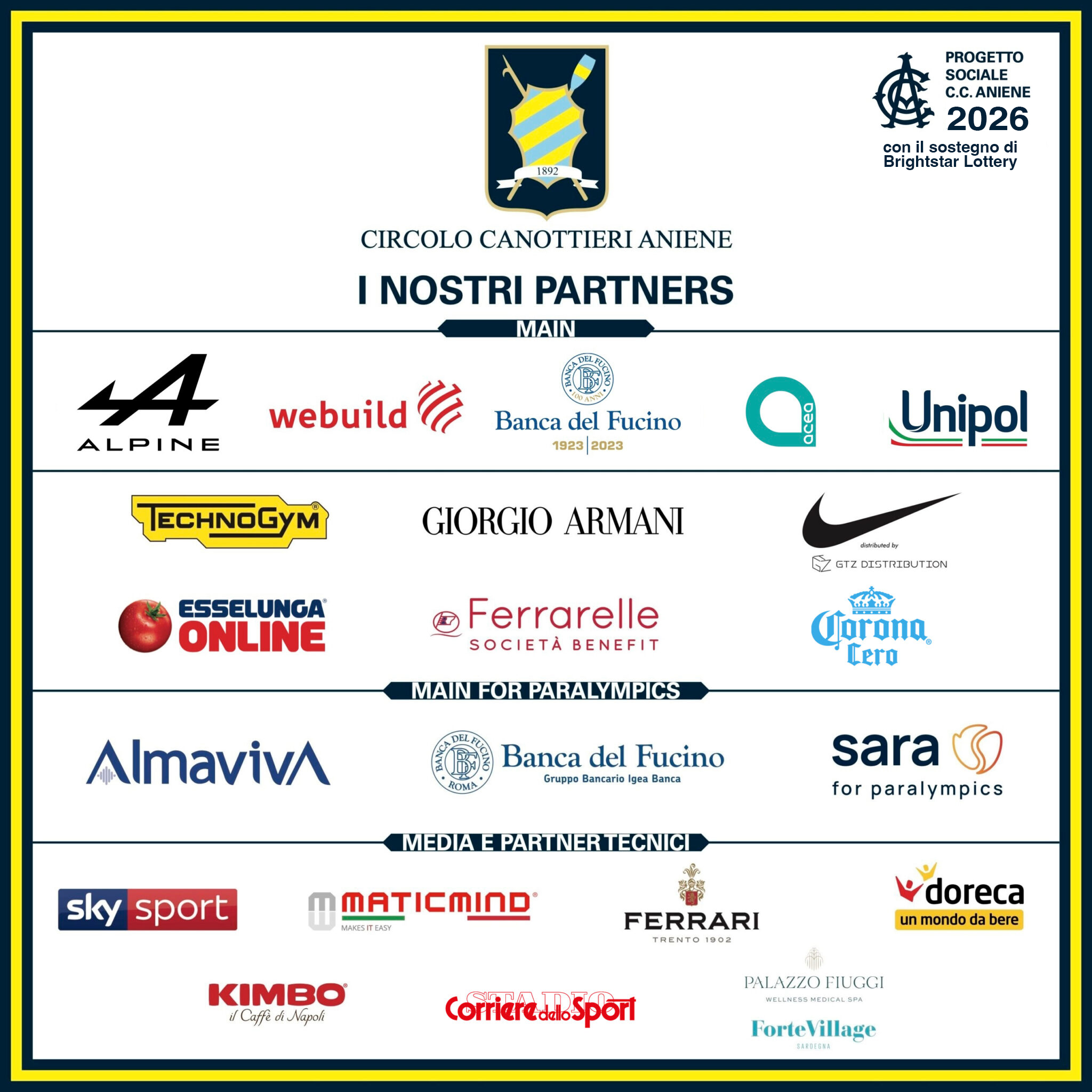 Questi i Partner che accompagnano il Circolo Canottieri Aniene nella propria attività.
